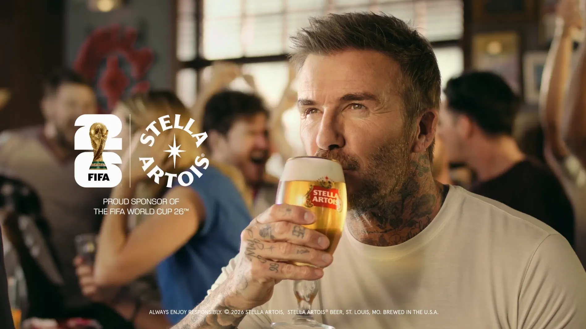 В преддверии чемпионата мира по футболу 2026 года Stella Artois (официальный спонсор турнира) запустил глобальную кампанию с участием Дэвида Бекхэма. Бренд смещает фокус с самого матча на то, что происходит вокруг него — на бары, где болельщики собираются вместе, чтобы пережить голы, победы и, возможно, разочарования.
