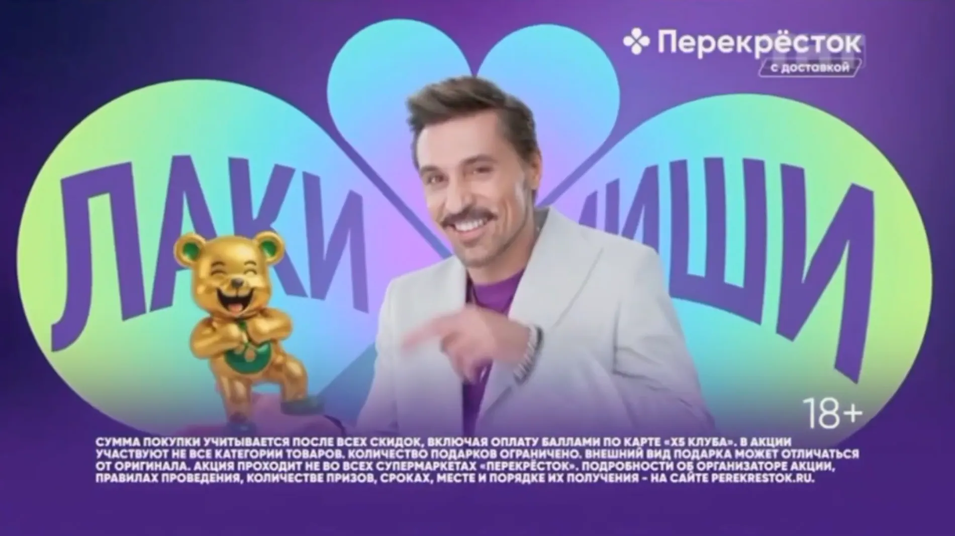 Торговая сеть «Перекрёсток» запустила новую рекламную акцию «ЛакиМиши» — коллекцию из 20 коллекционных мишек-талисманов, каждый из которых символизирует удачу в определённой сфере жизни. Лицом кампании стал певец Дима Билан (настоящее имя Виктор Белан), который исполнил в рекламном ролике кавер версию своей песни «Держи» .