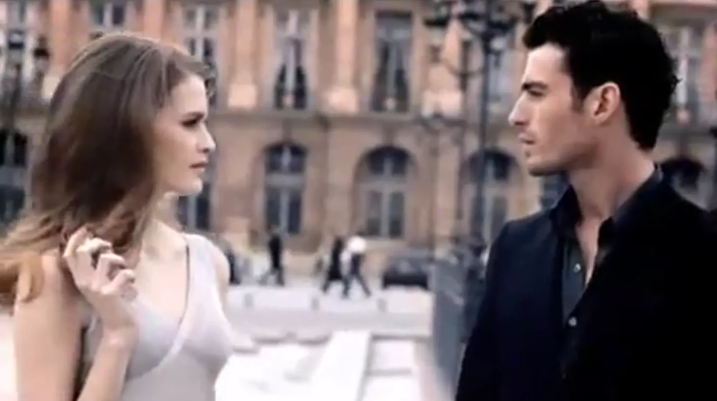 В рекламе девушка идет по набережной Парижа, брызгается духами. После этого ее замечает мужчина. Параллельно показывается скульптура Амура, как бы намекая, что он соединил их сердца. В конце рекламы они сталкиваются, смотрят друг на друга и расходятся.